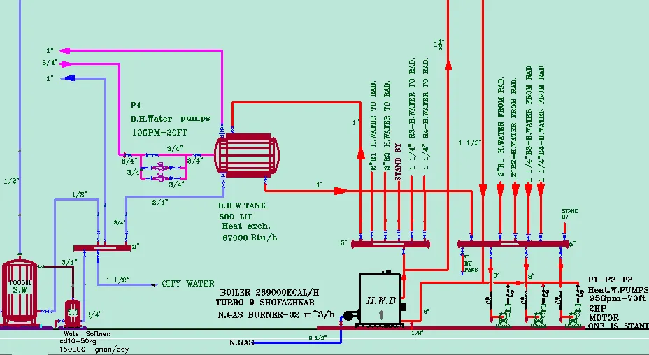 – مهندسی تاسیسات مکانیک: طراحی سیستمهای لولهکشی آب سرد و گرم، فاضلاب، تهویه مطبوع (HVAC)، گازرسانی، اطفاء حریق، استخر (پلانها، رایزر دیاگرام، محاسبات).